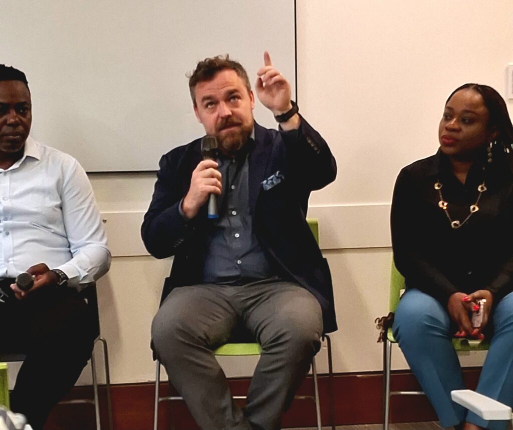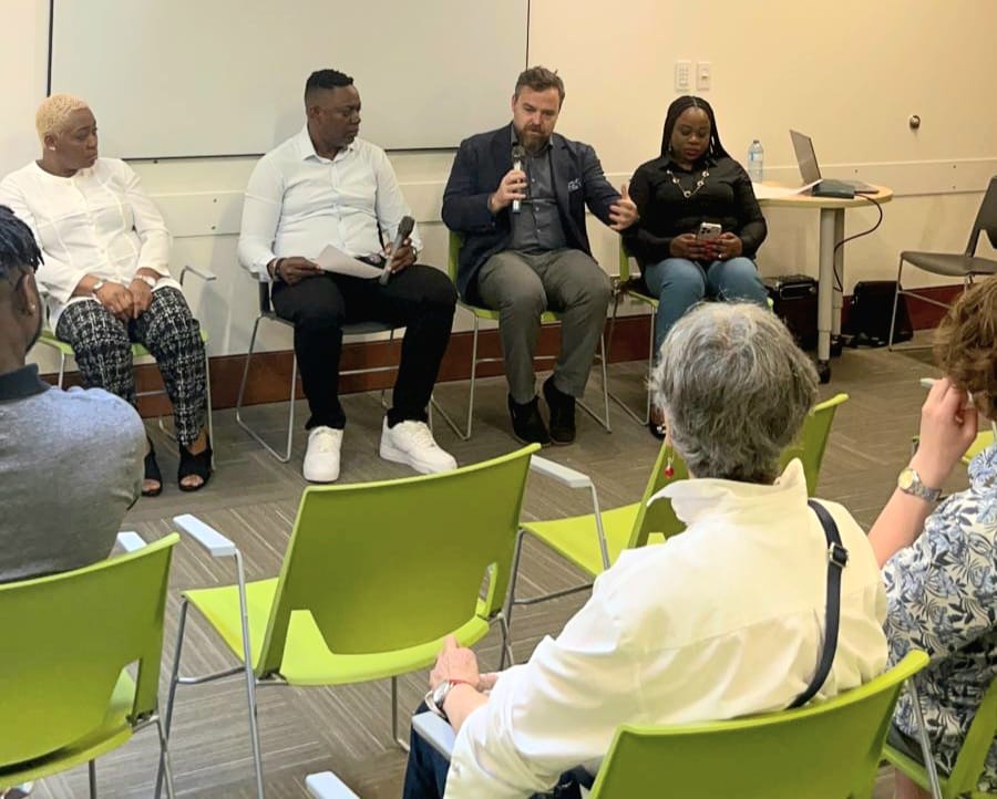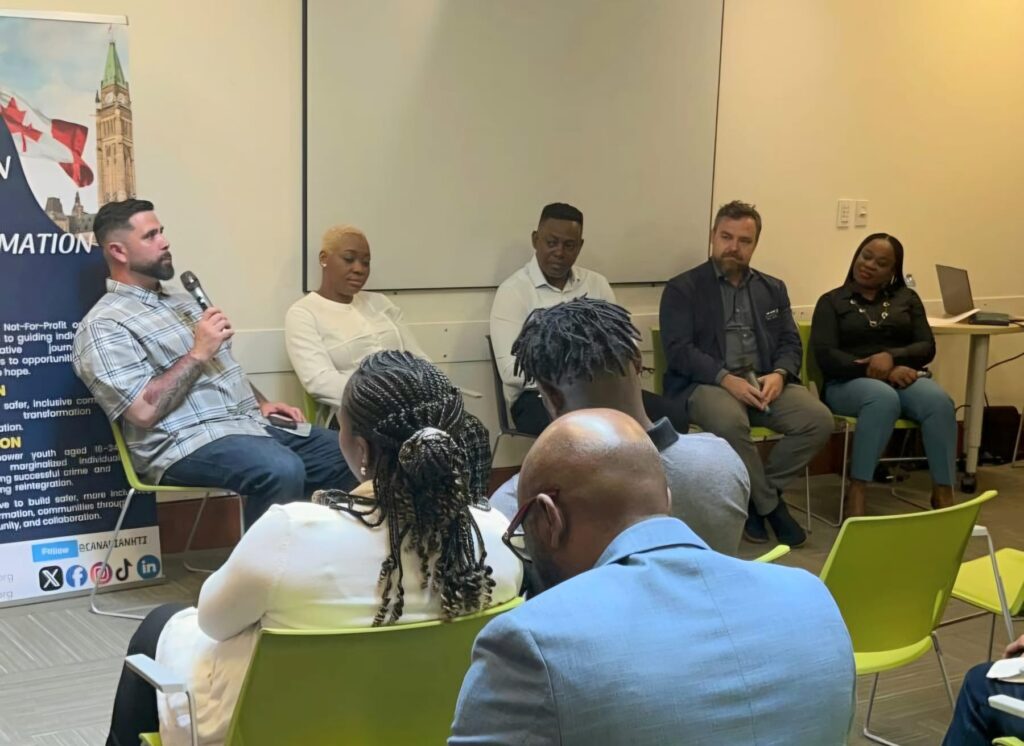 Speakers and participants at the 2025 Hope Conference, held May 17 at the Ottawa Public Library – Beaverbrook Branch, Kanata. Themed “Redefining Safety: Community-Led Solutions”, the event featured Emmanuel Tobi (Founder/COO, CHTI) with panelists Geoff Haskell (Criminal Defence Lawyer), Temi Sam (CEO, CodeHer), Chris Draper (CHTI Board Member), and Ifeoma Okonji (Founder, Emerging Lives Initiative)